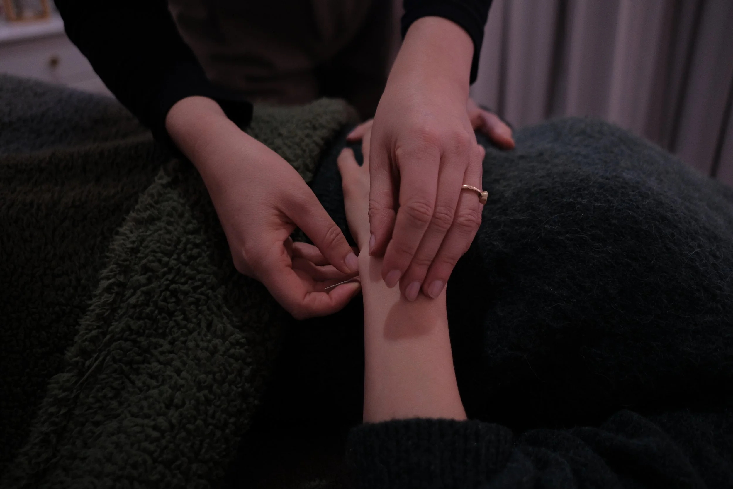 Acupuncture is the process of inserting fine, single use, sterile needles into acupuncture points on the body. The acupuncture points are chosen according to the Chinese Medicine diagnosis process where I take an in-depth history of your menstrual cycle and your current lifestyle, combining that with the palpation of the 12 Chinese pulses on your wrists and a look at your tongue.